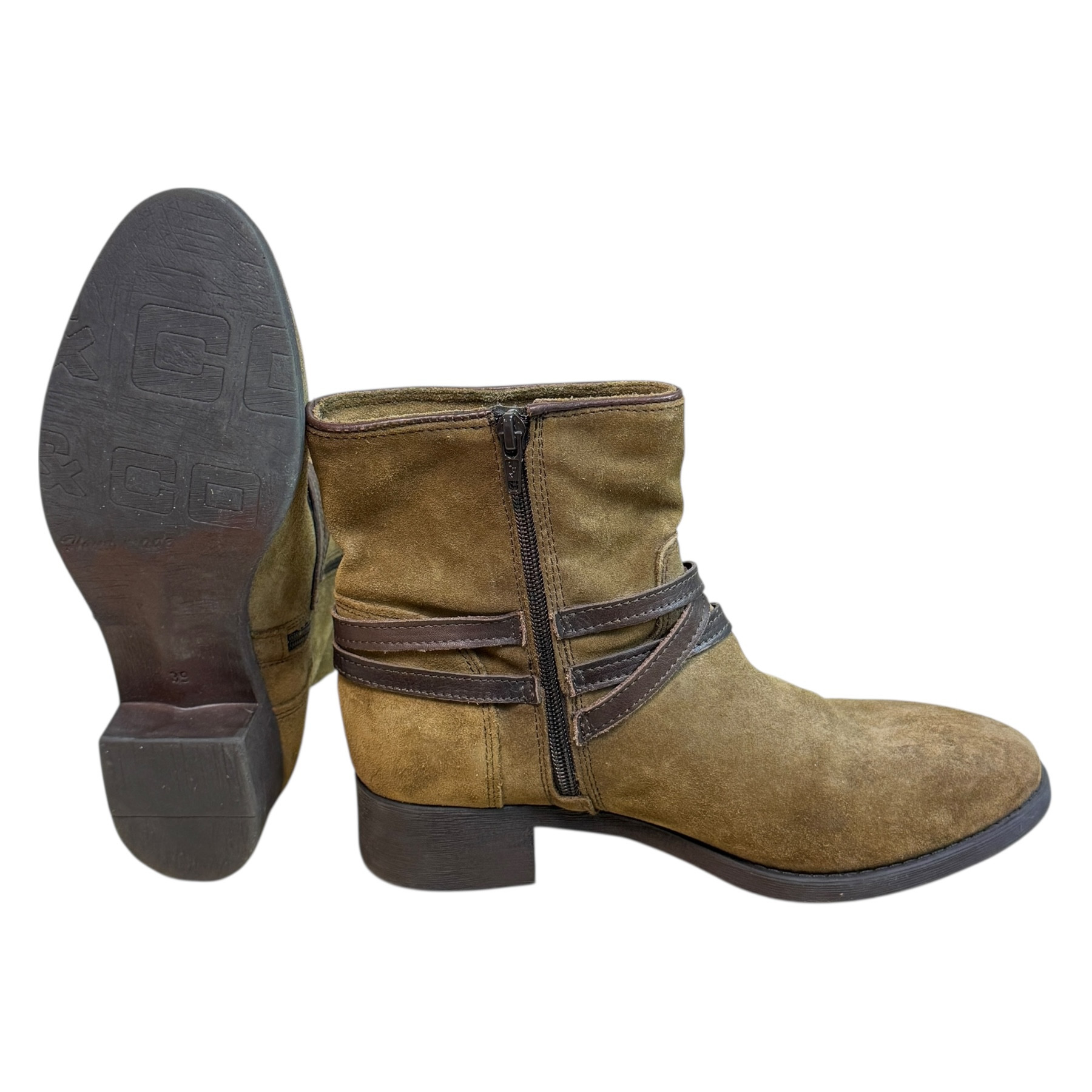 m. zewnętrzny: skóra, wkładka: skóra, podeszwa: m. syntetyczny, w. obcasa:3.5cm, w. cholewki:14cm