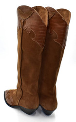 m.zewnętrzny: zamsz, wkładka : skóra, podeszwa: m. syntetyczny, brak ocieplenia, w. obcasa 5,5cmc w. cholewki 43cm