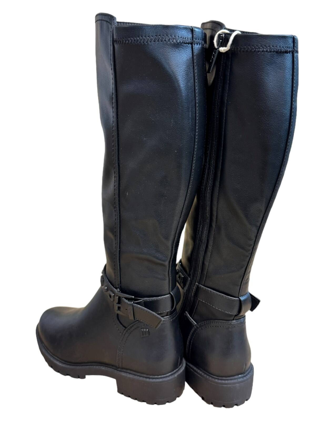m. zewnętrzny: skóra ekologiczna, wkładka: tkanina, podeszwa: m. syntetyczny, w. obcasa:3cm, w. cholewki:38cm