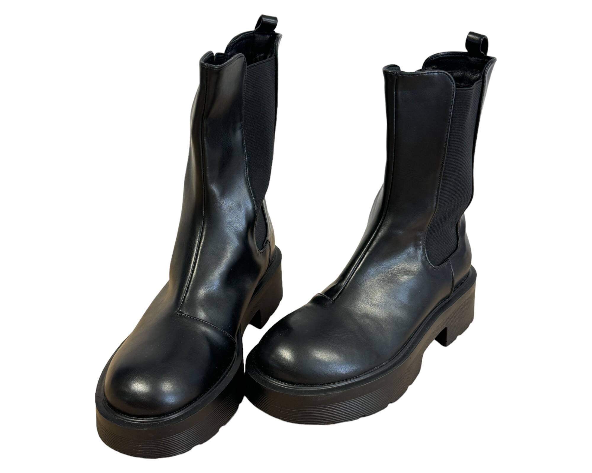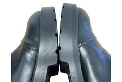 m. zewnętrzny: skóra ekologiczna, wkładka: tkanina, podeszwa: m. syntetyczny, w. obcasa:5cm, w. cholewki: 20cm