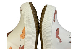 m. zewnętrzny: tworzywo sztuczne, wkładka: tkanina, podeszwa: m. syntetyczny