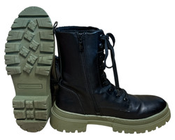 m. zewnętrzny: skóra ekologiczna, wkładka: tkanina, podeszwa: m. syntetyczny, w. obcasa:5cm, w. cholewki:18cm