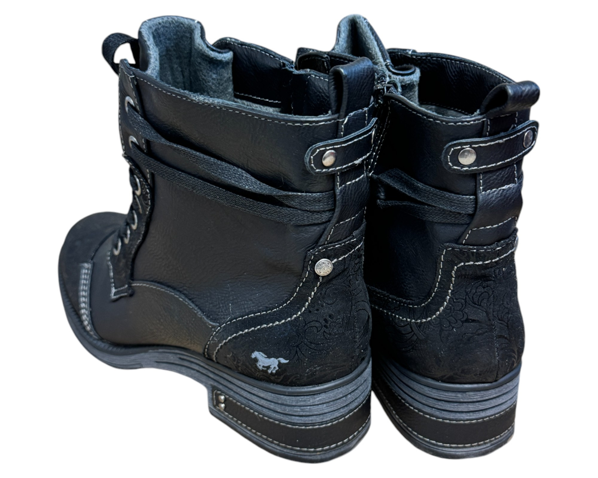 m. zewnętrzny: skóra ekologiczna, wkładka: tkanina, podeszwa: m. syntetyczny, w. obcasa:4cm, w. cholewki:12cm