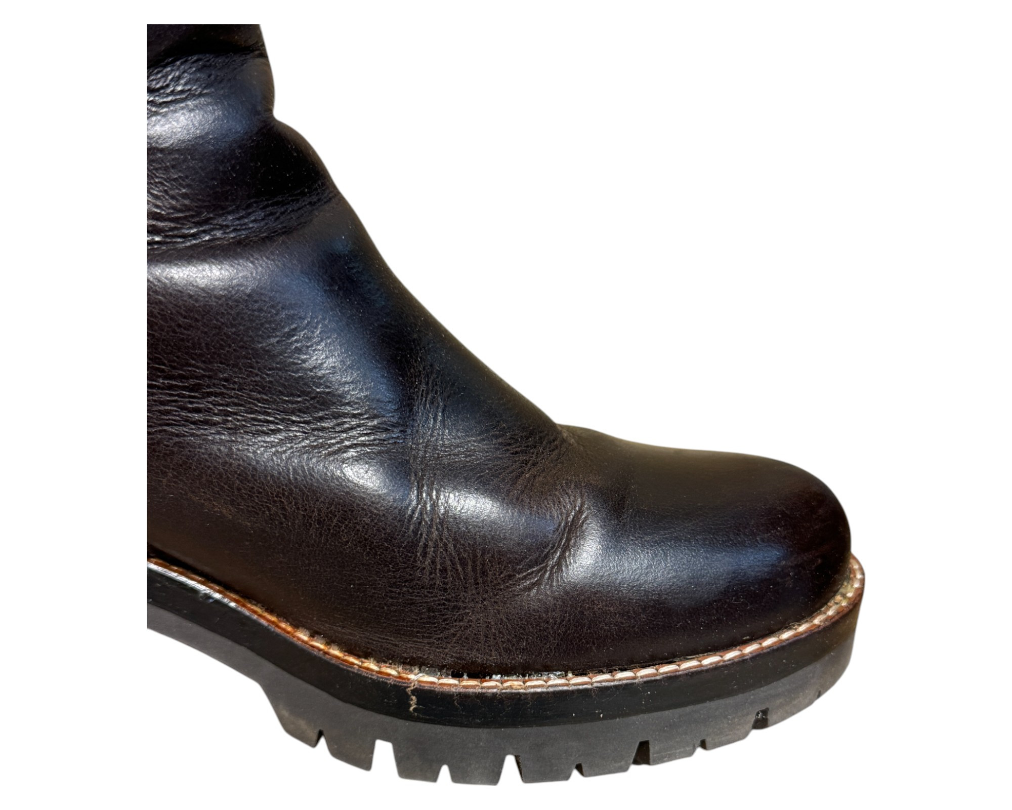 • Buty są w dobrym stanie. W lewym bucie ślad po naprawie u szewca na czubku (na zdjęciu0. (na zdjęciu). Zapakowane w nieoryginalnym kartonie.