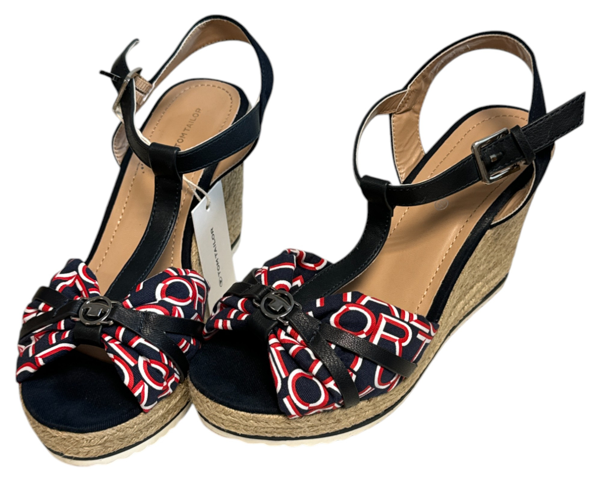 m. zewnętrzny: tkanina, wkładka: skóra ekologiczna, podeszwa: m. syntetyczny, w. obcasa:10cm