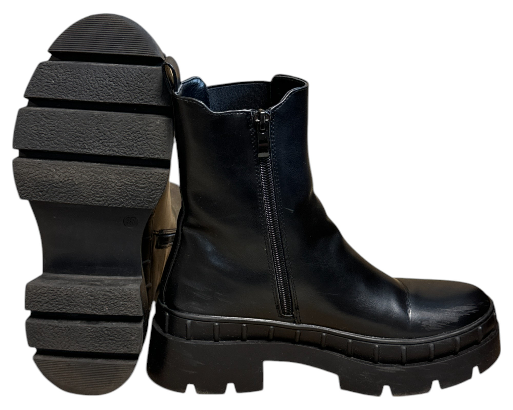 m. zewnętrzny: skóra ekologiczna, wkładka: skóra ekologiczna, podeszwa: m. syntetyczny, w. obcasa:5.5cm, w. cholewki: 16cm