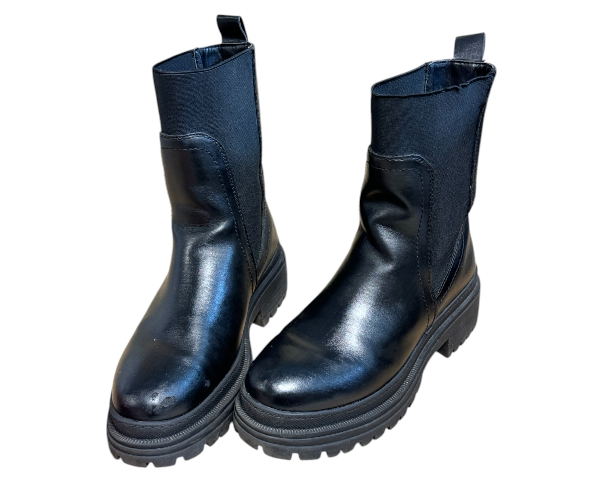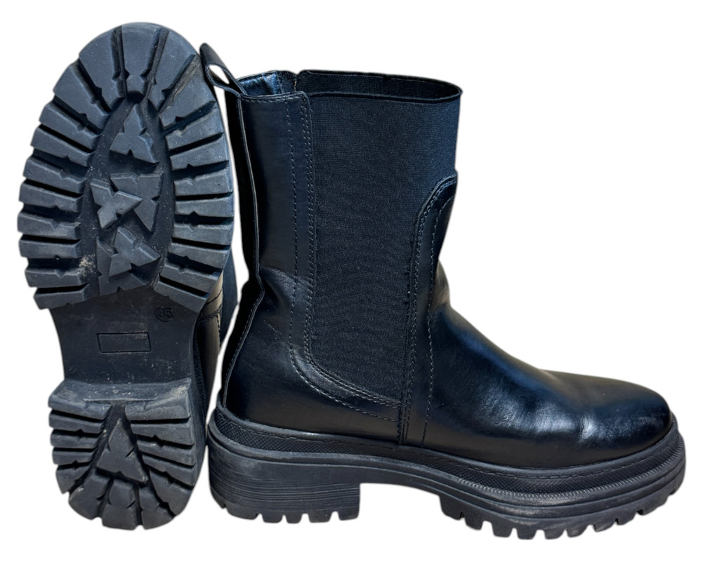 m. zewnętrzny: skóra ekologiczna, wkładka: tkanina, podeszwa: m. syntetyczny, w. obcasa:5cm, w. cholewki:18cm
