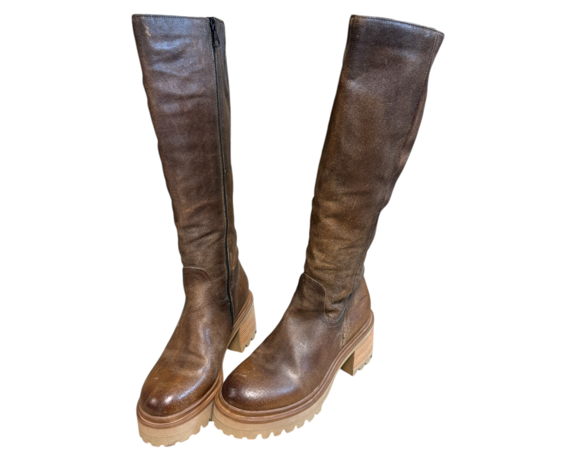 m. zewnętrzny: skóra, wkładka: tkanina, podeszwa; m. syntetyczny, w. obcasa:6cm, w. cholewki:40cm