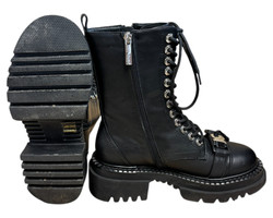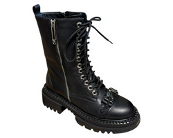 m. zewnętrzny:skóra, wkładka:tkanina, podeszwa: m. syntetyczny, w. obcasa:5cm, w. cholewki:19cm