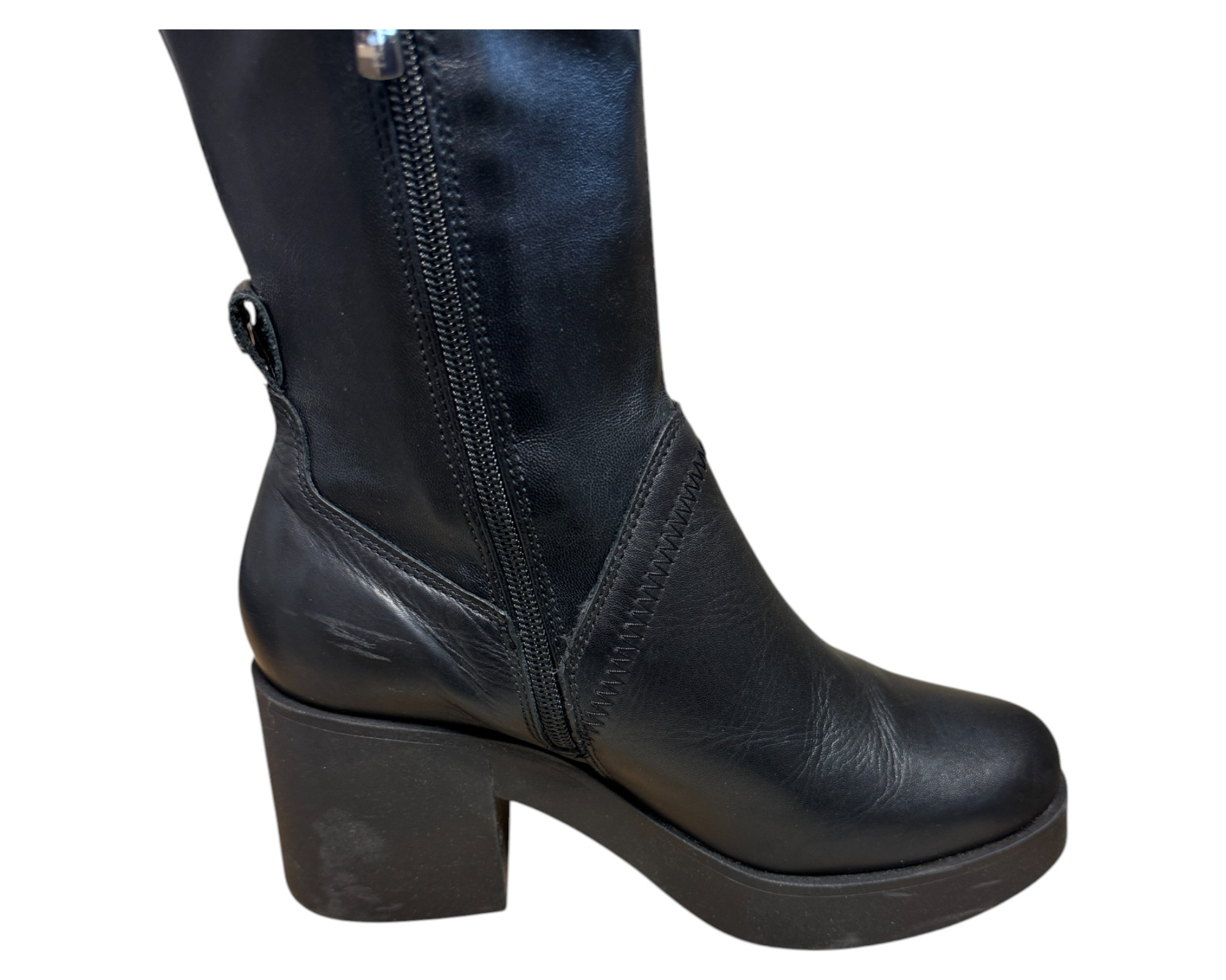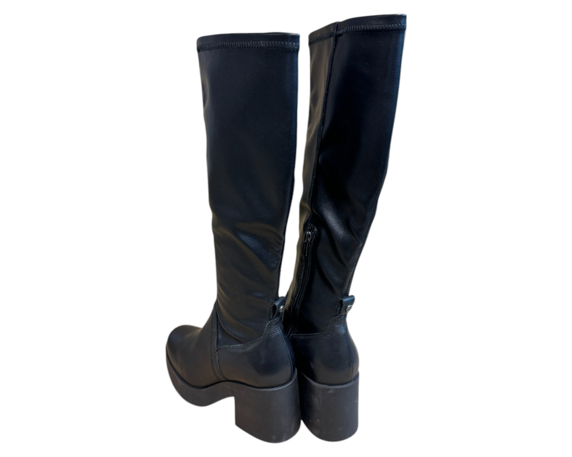 m. zewnętrzny: skóra ekologiczna, wkładka: skóra ekologiczna, podeszwa: m.syntetyczny, w. obcasa:8cm, w. cholewki:40cm