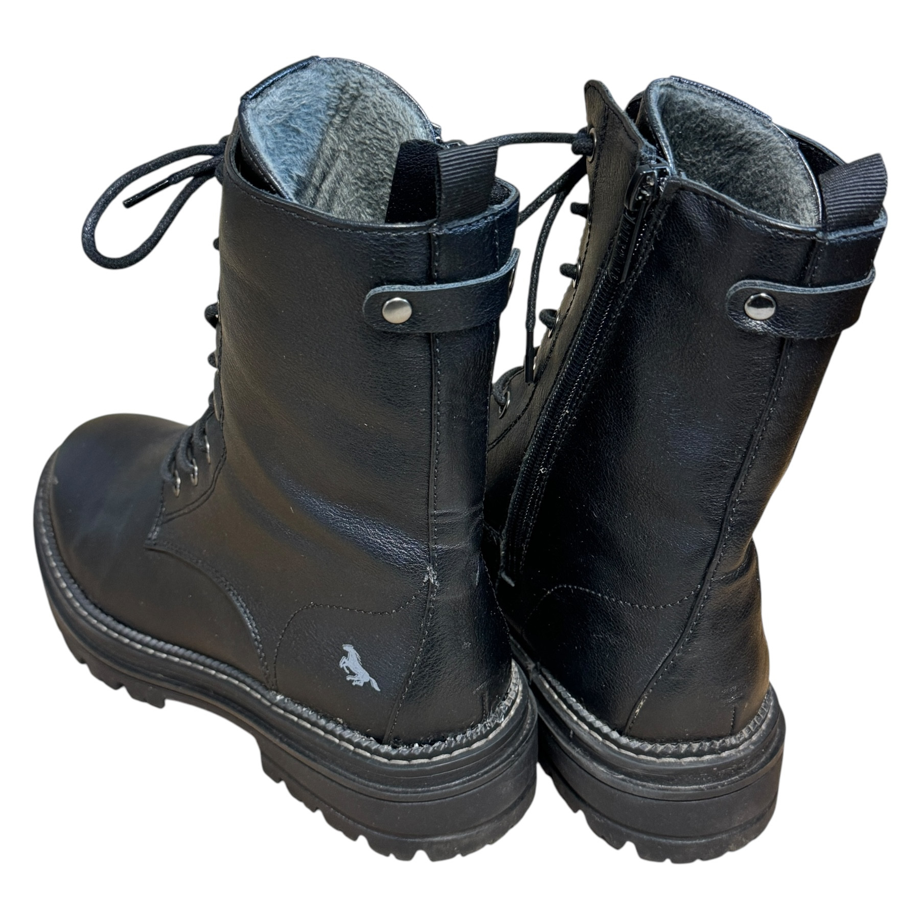 • Buty są w bardzo dobrym stanie. W lewym bucie wada na pięcie [na zdjęciu]. Zapakowane w nieoryginalnym kartonie.