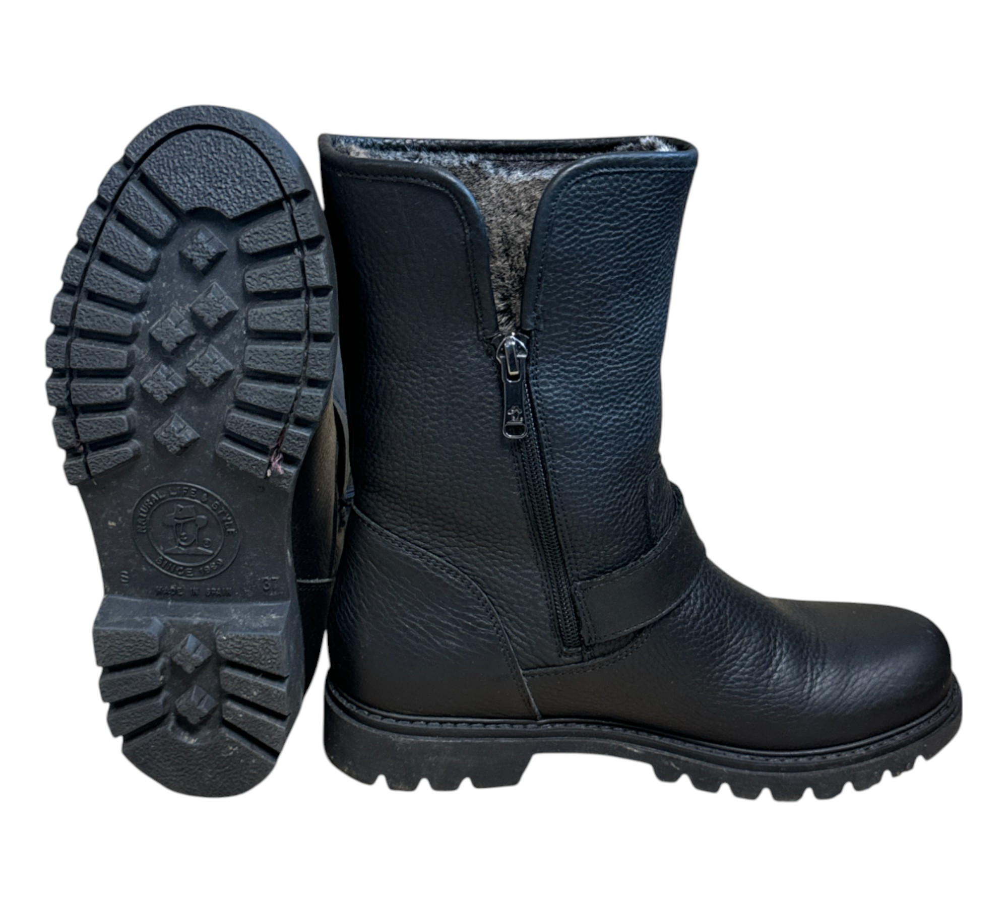 m. zewnętrzny: skóra , wkładka; tkanina, podeszwa: m. syntetyczny, ocieplane, w. obcasa:2.5cm, w. cholewki:20cm