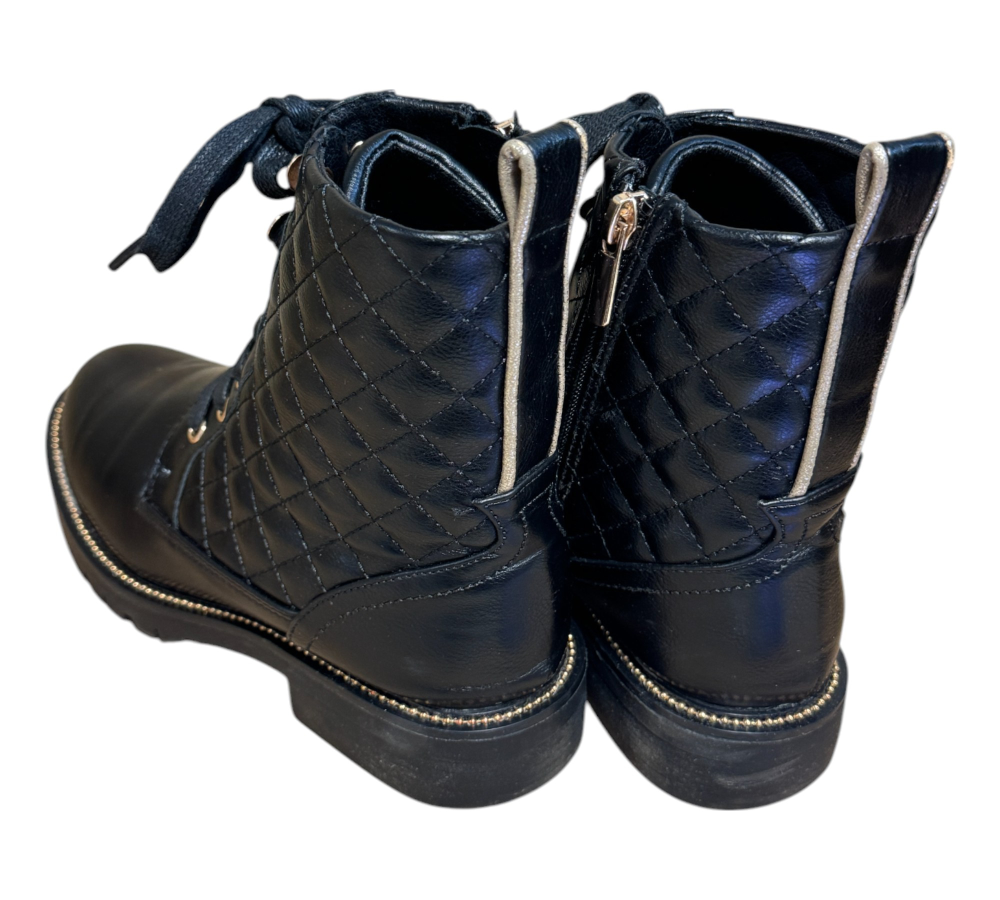 • Buty są w bardzo dobrym stanie. W obu butach drobne wady na cholewkach [na zdjęciu]. Zapakowane w nieoryginalnym kartonie.