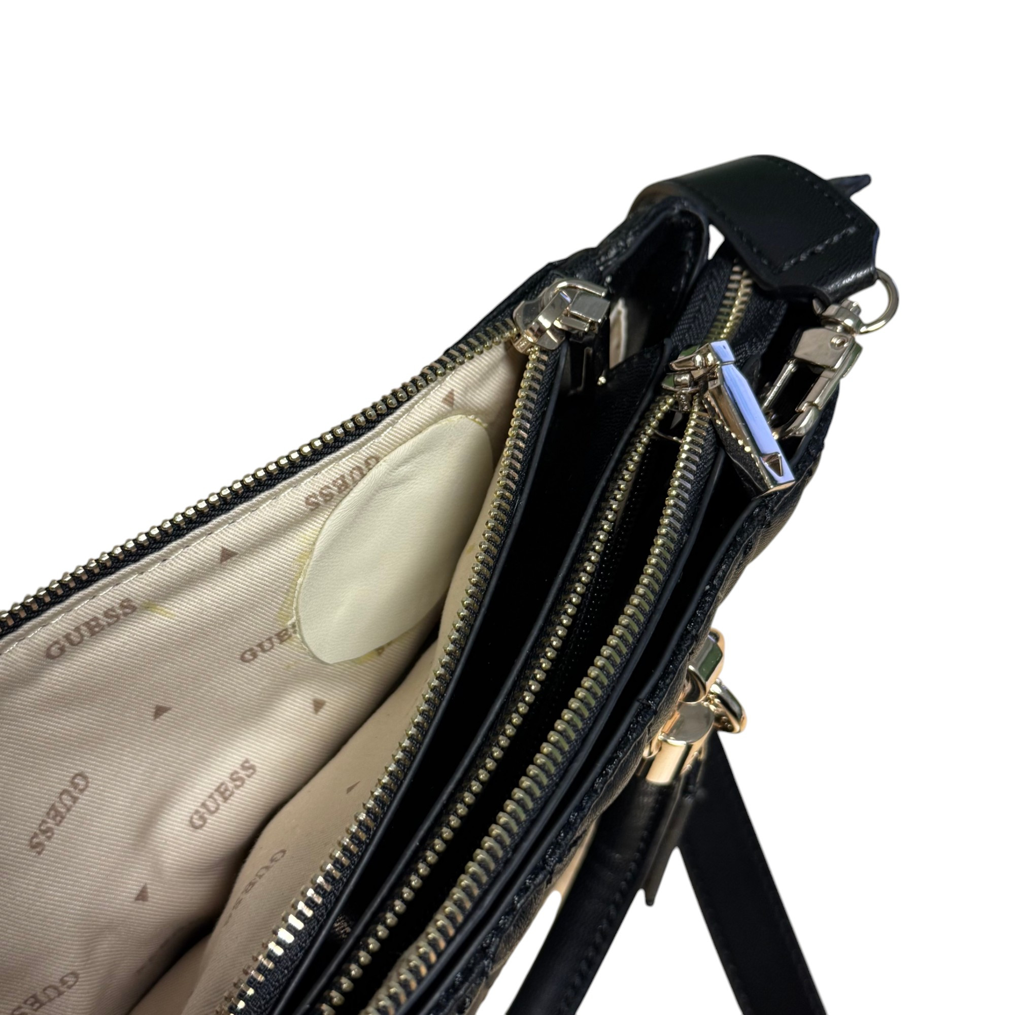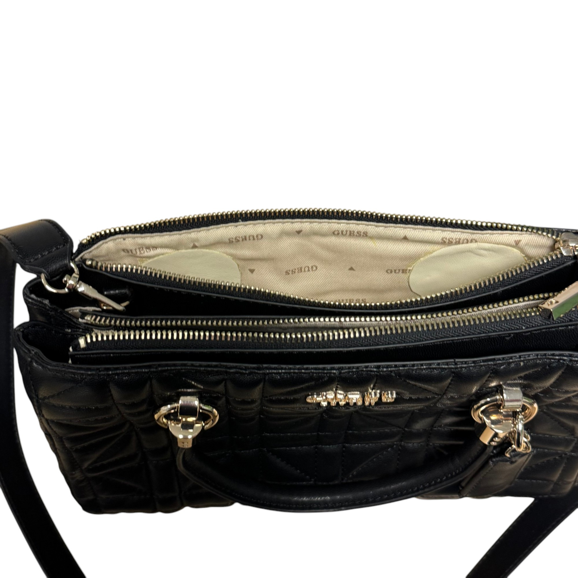 Stan: używany, stan bardzo dobry, posiada ślady po naprawie u krawcowej wewnątrz torebki oraz drobne wady na metalowych elementach (na zdjęciu).
