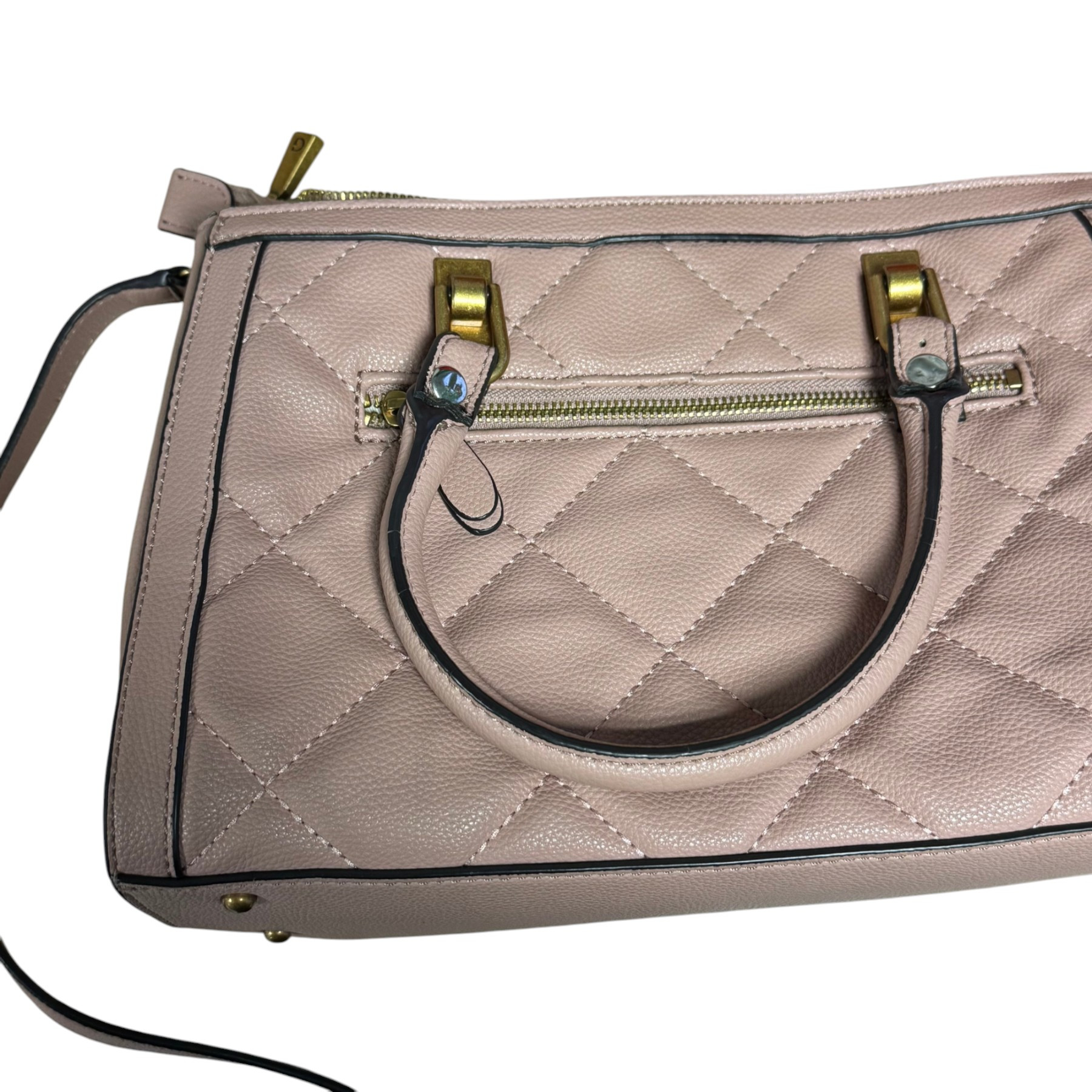 Stan: używany, stan dobry, posiada drobne wady na rogach i z przodu torebki. Rączka posiada ślad po naprawie u krawcowej (na zdjęciu).