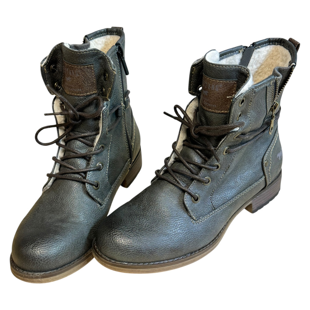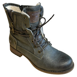 m. zewnętrzny: skóra ekologiczna wkładka: tkanina, podeszwa: m. syntetyczny, w. obcasa:2.5cm. w. cholewki:15cm