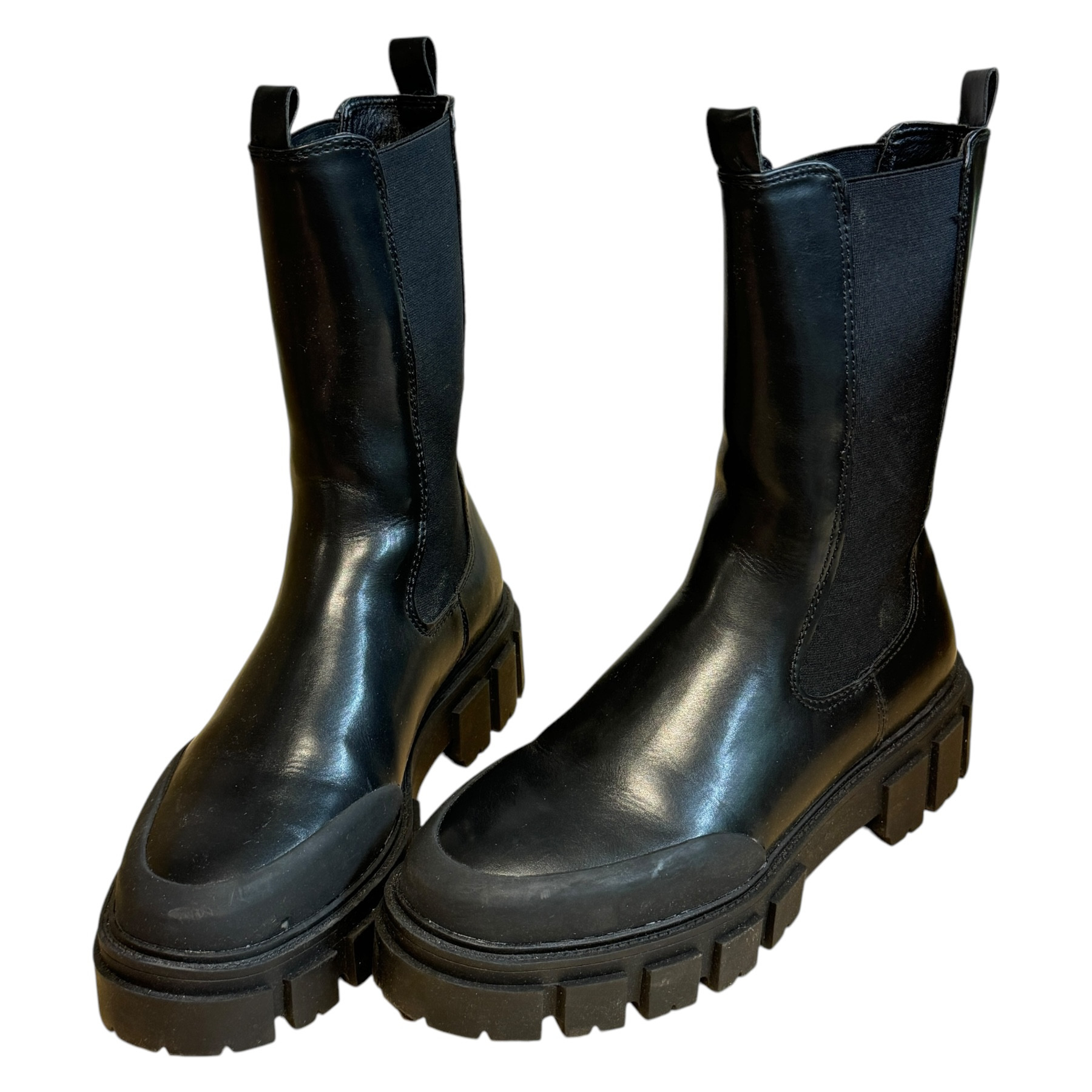 m. zewnętrzny: skóra ekologiczna, wkładka: skóra ekologiczna, podeszwa: m. syntetyczny, w. obcasa:4.5cm. w. cholewki:21cm