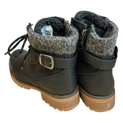 m. zewnętrzny; skóra ekologiczna, wkładka:tkanina,podeszwa: m. syntetyczny,w. Obcasa:3cm, w. cholewki; 13cm