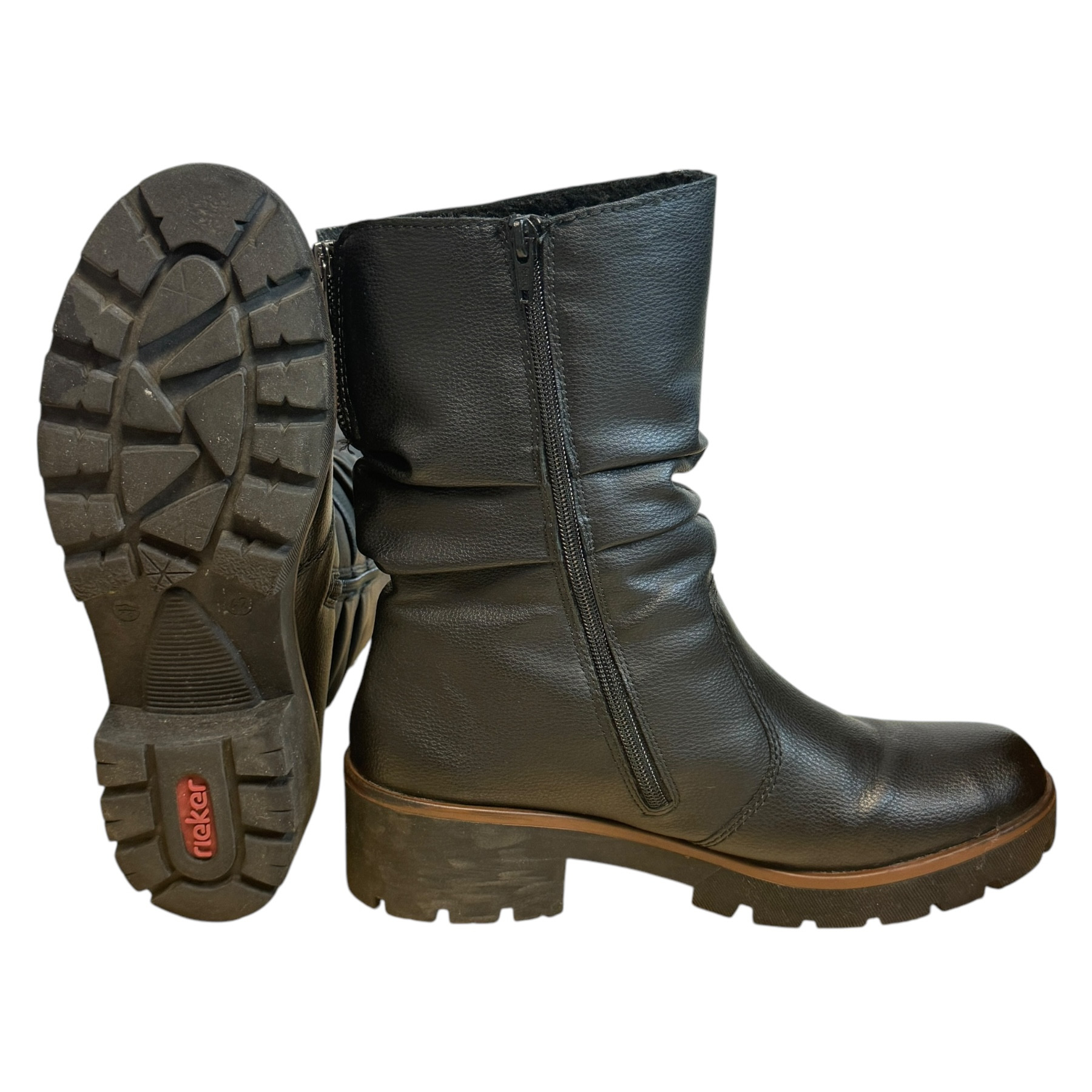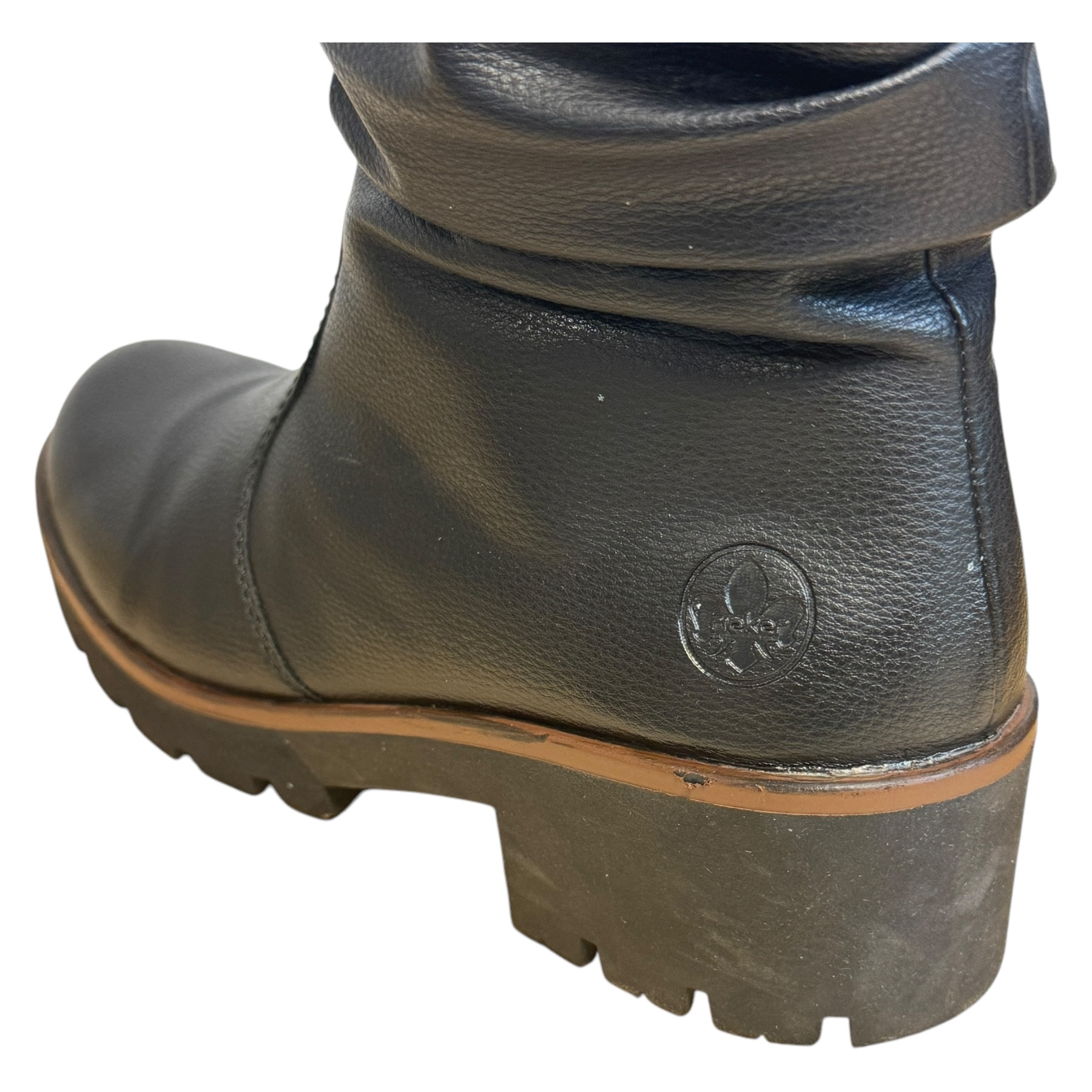 m. zewnętrzny: skóra ekologiczna, wkładka: tkanina, podeszwa: m. syntetyczny, w. obcasa:5cm, w. cholewki: 20cm