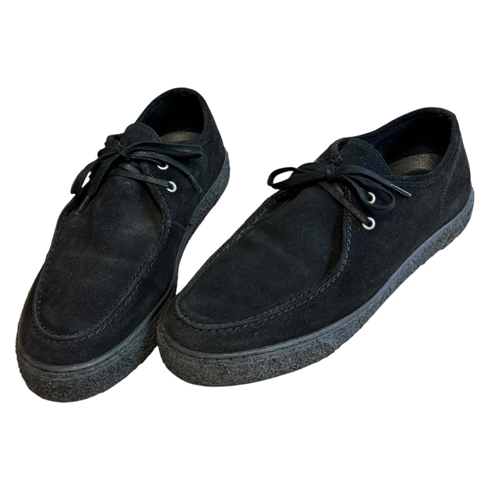 • Buty są w bardzo dobrym stanie. W lewym bucie ślad po naprawie u szewca [na zdjęciu]. Zapakowane w nieoryginalnym kartonie.