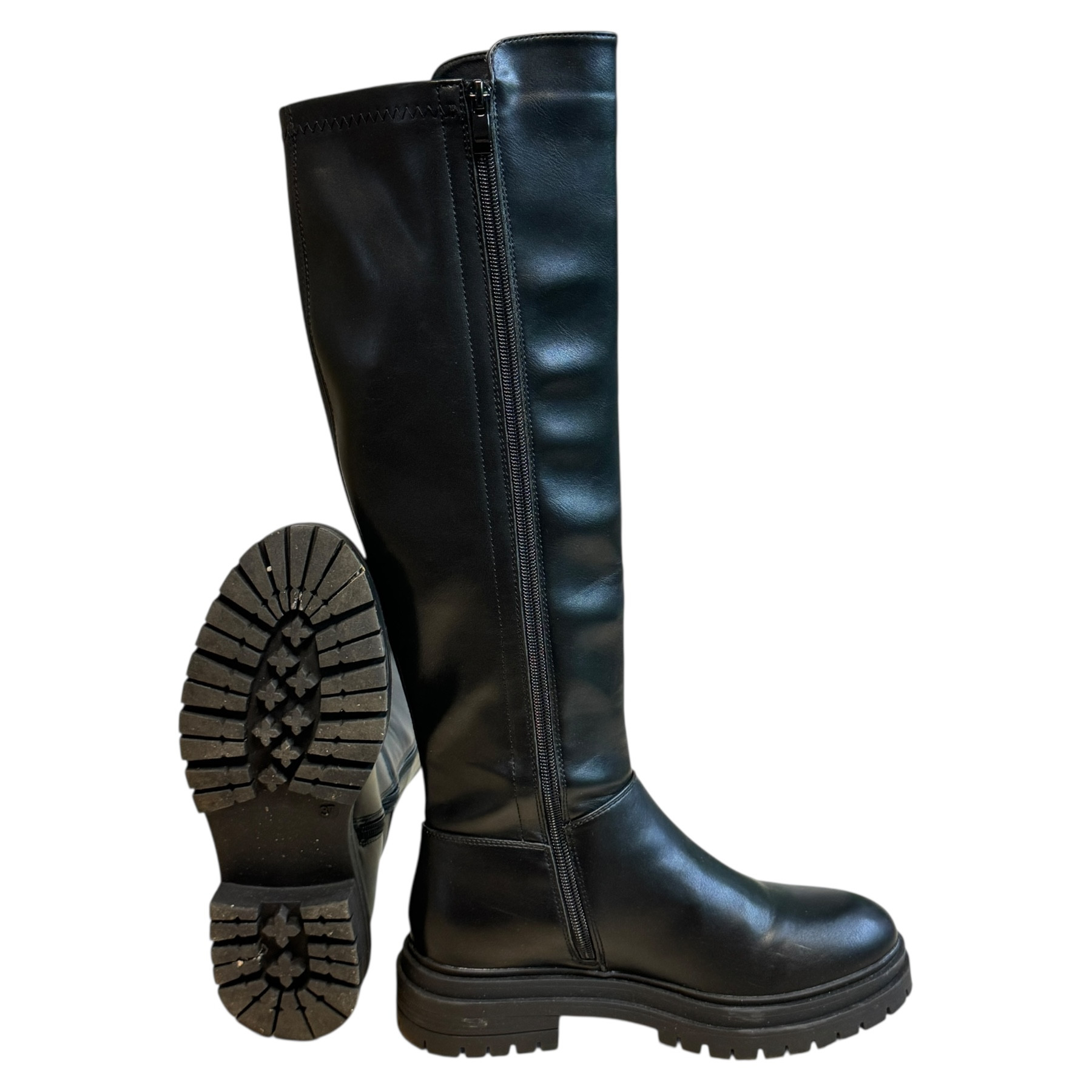 m. zewnętrzny: skóra ekologiczna, wkładka: skóra ekologiczna, podeszwa: m. syntetyczny, w. obcasa:4.5cm, w. cholewki:43cm