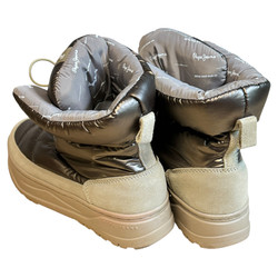 m. zewnętrzny: tworzywo sztuczne, wkładka: tkanina, podeszwa; m. syntetyczny