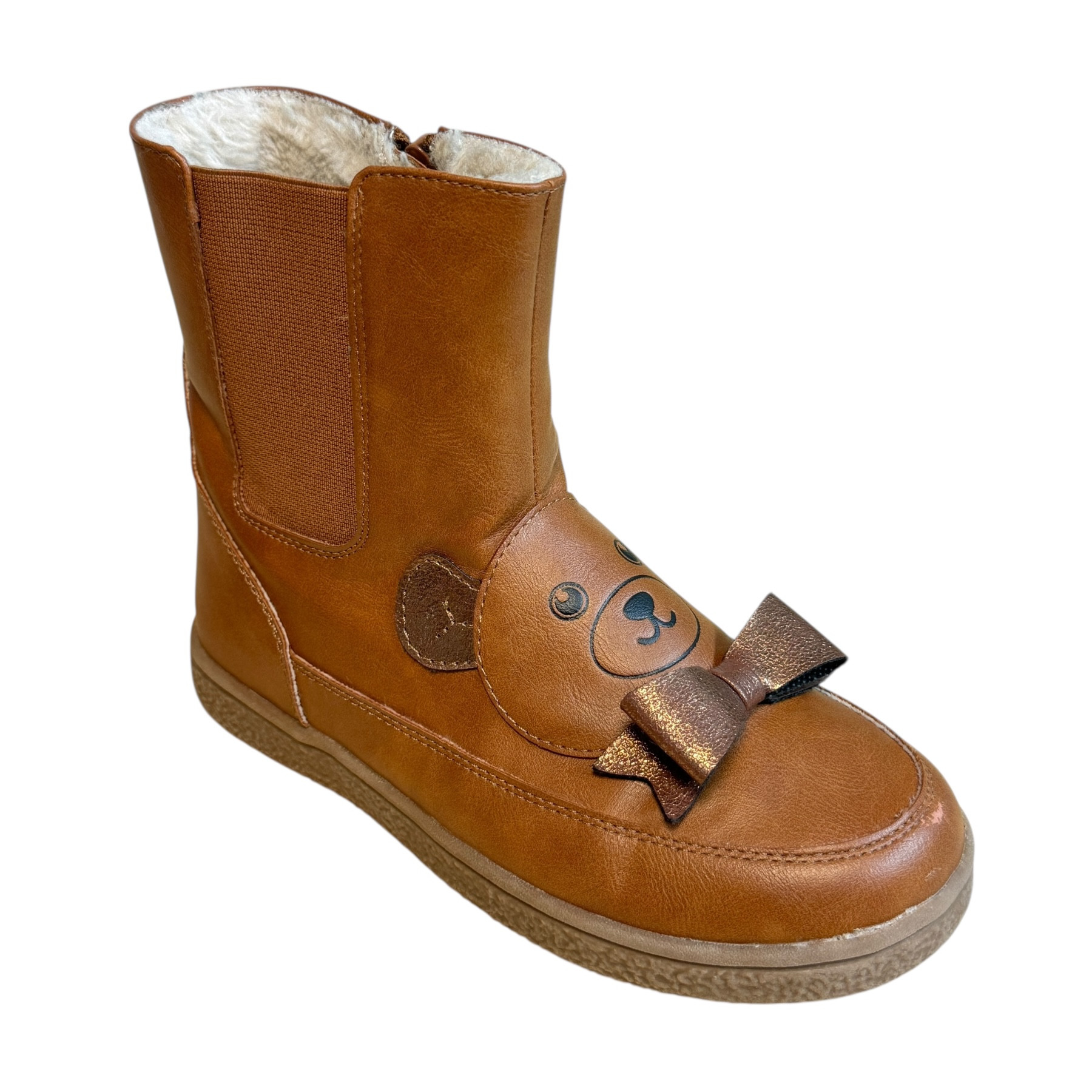 m. zewnętrzny:skóra ekologiczna, wkładka: tkanina, podeszwa: m. syntetyczny, ocieplane