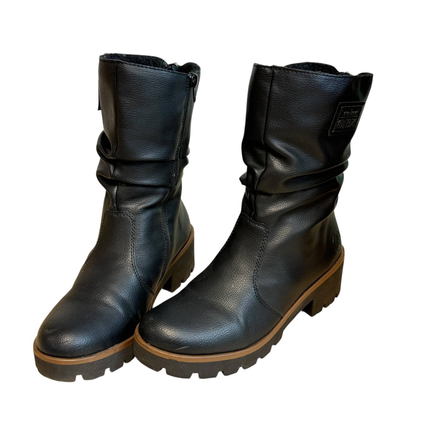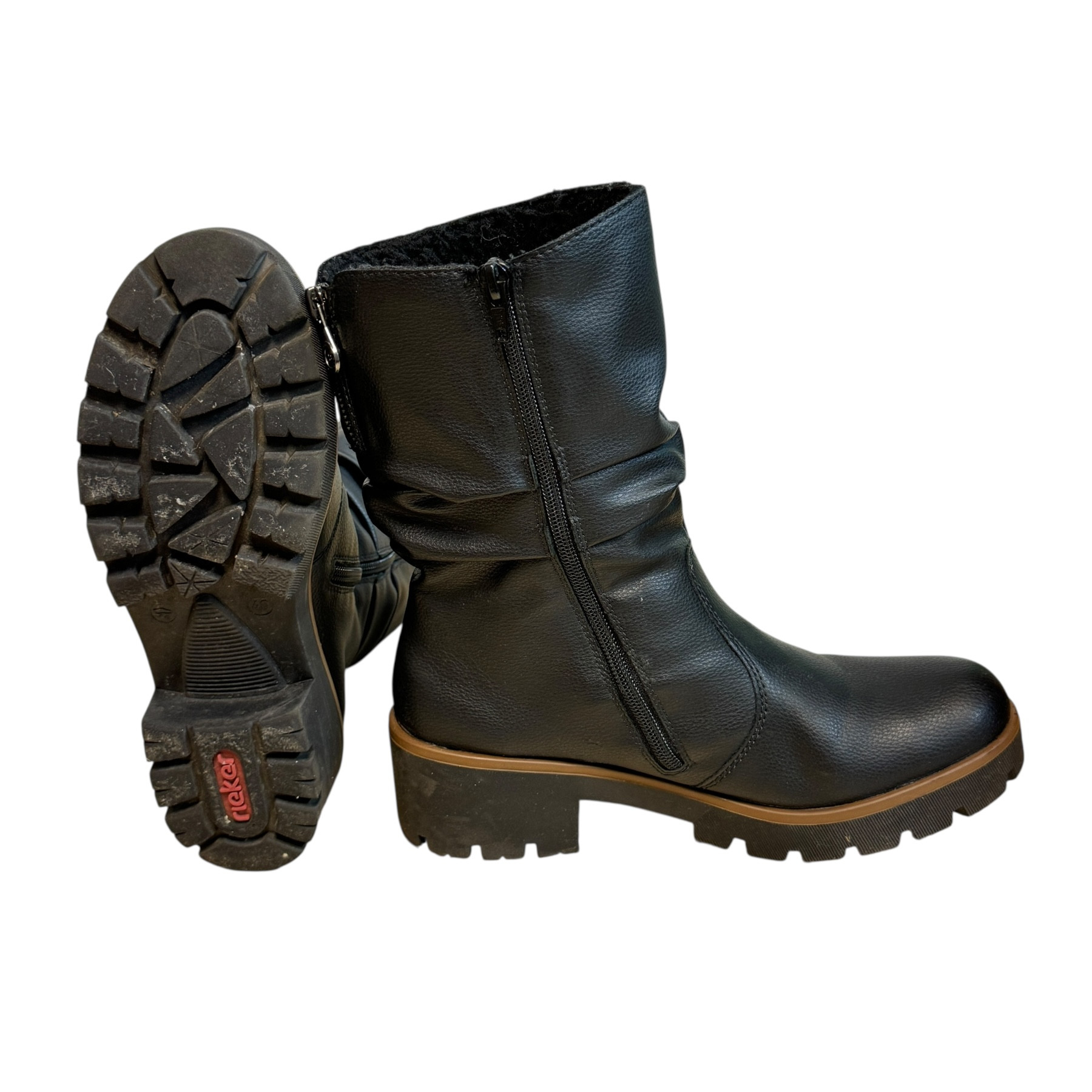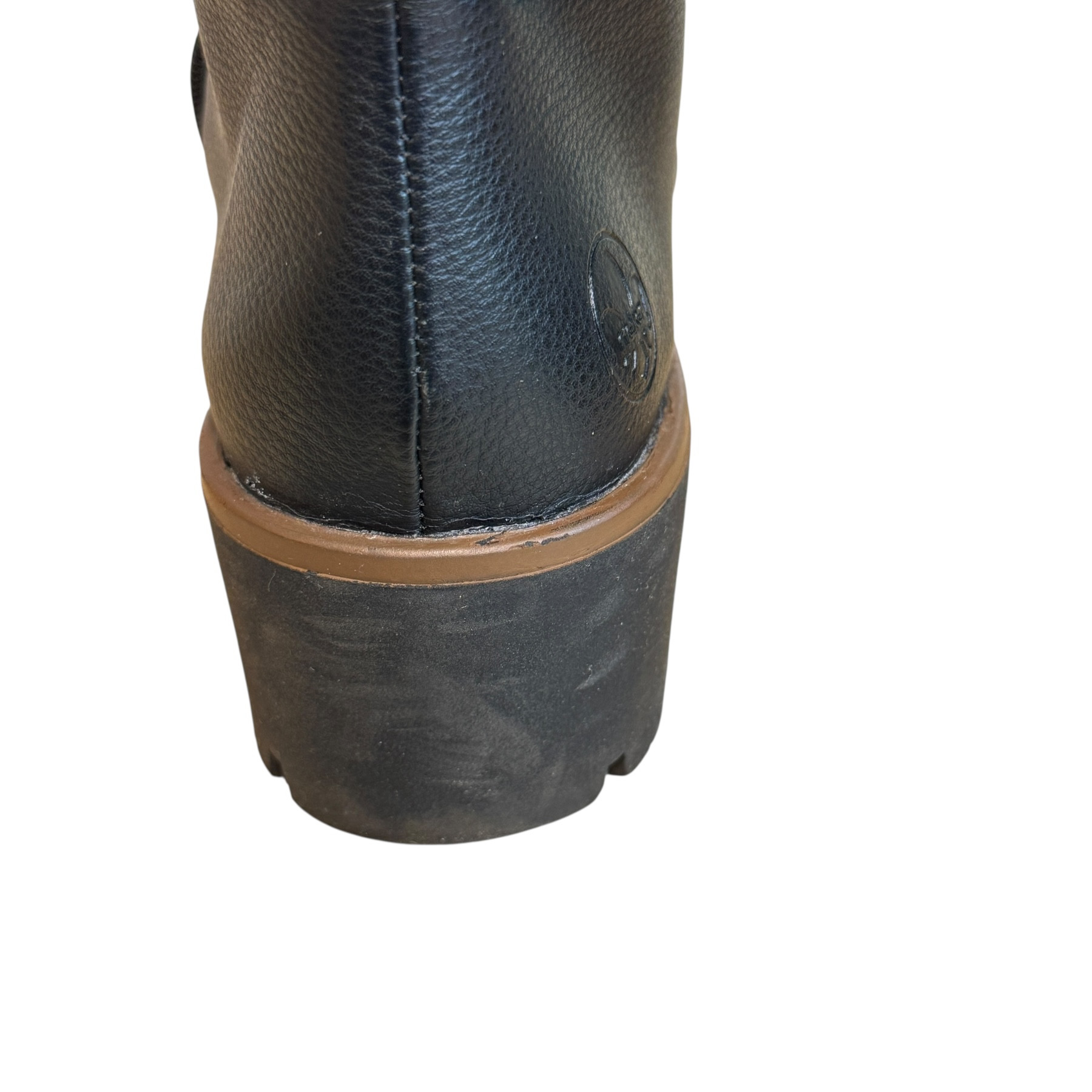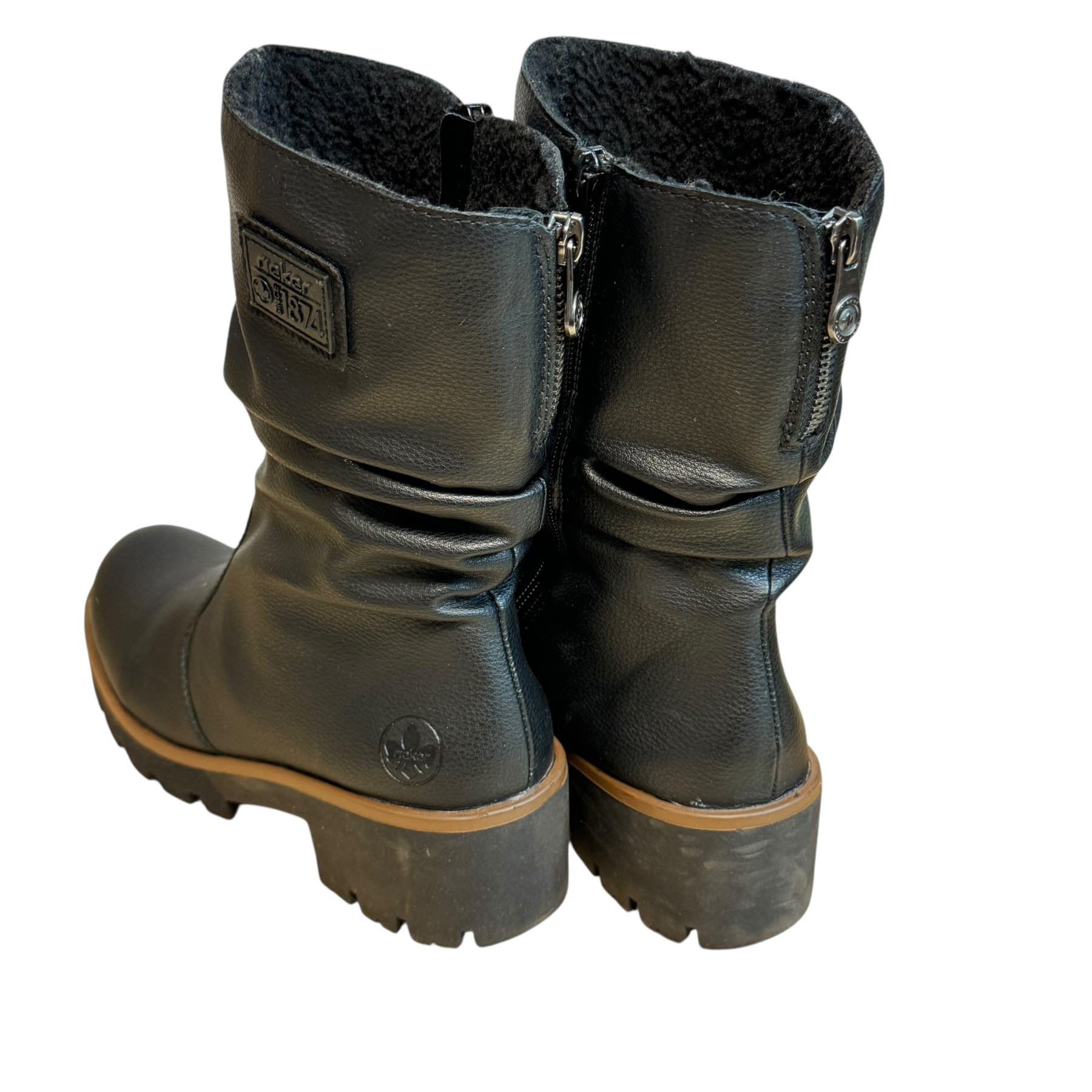 m. zewnętrzny: skóra ekologiczna, wkładka:tkanina, podeszwa: m. syntetyczny, w. obcasa:5cm, w. cholewki:21cm