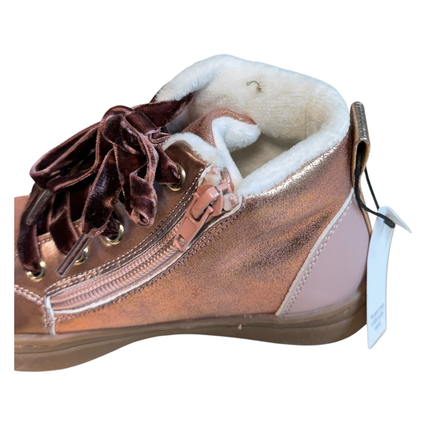 • Buty są nowe, różnią się rozmiarem. Prawy but większy o 0.5cm. W prawym bucie drobna wada na materiale wewnętrznym (na zdjęciu). Zapakowane w nieoryginalnym kartonie.