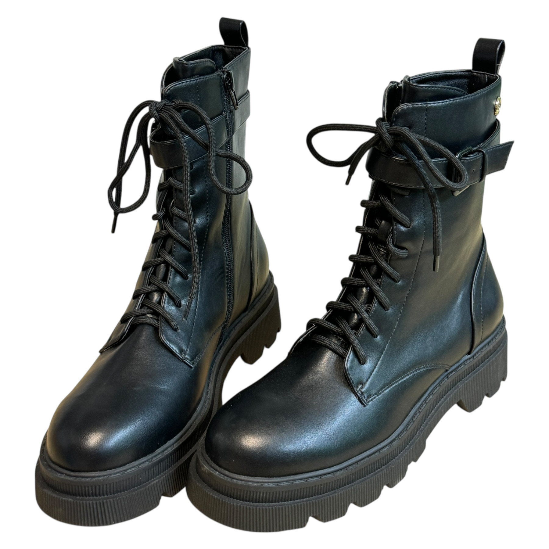 m. zewnętrzny: skóra ekologiczna, wkładka: skóra ekologiczna, podeszwa; m. syntetyczny, w. obcasa:5cm, w. cholewki: 18cm