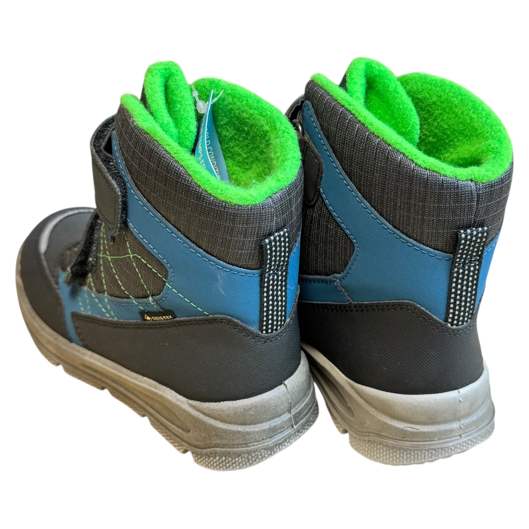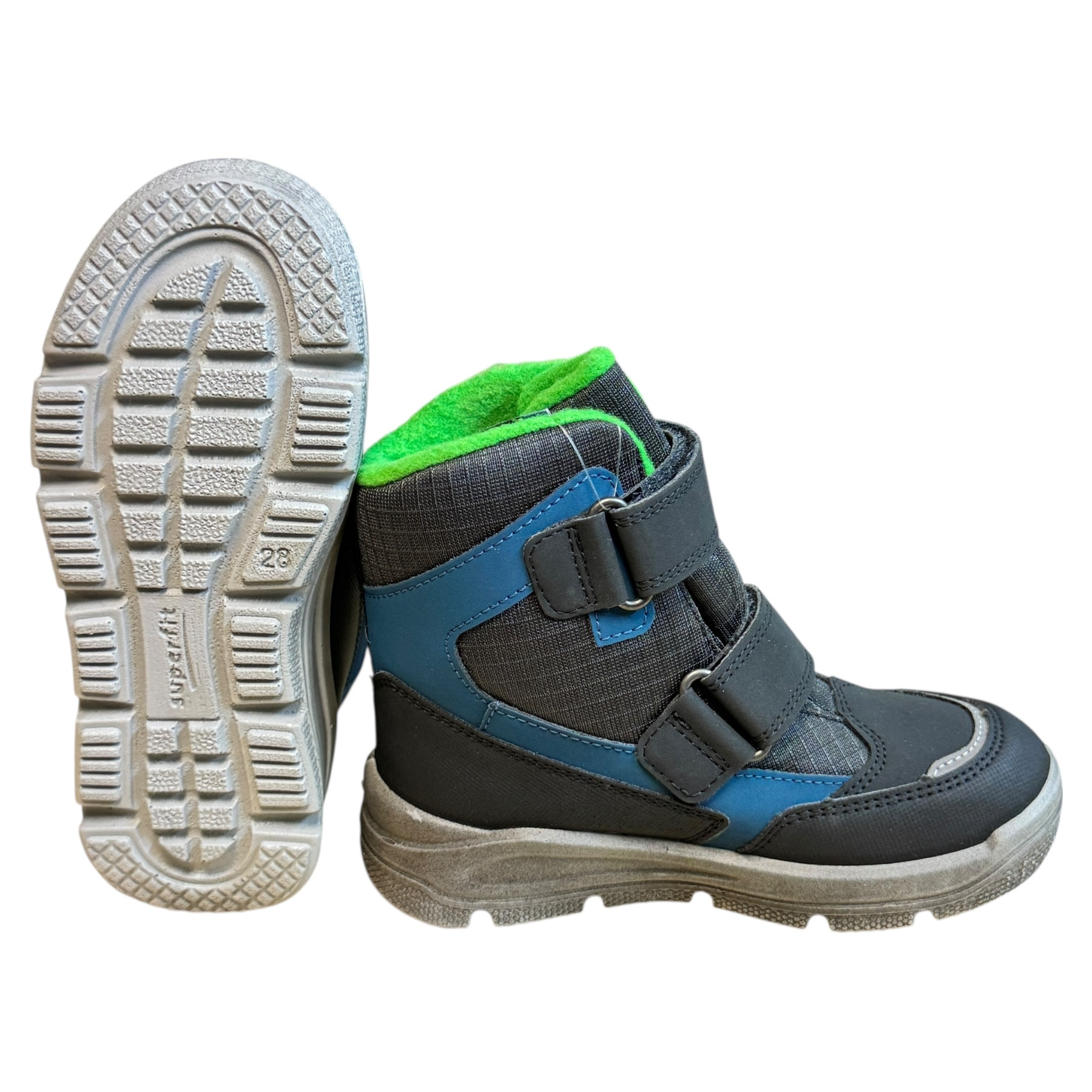 m. zewnętrzny: tworzywo sztuczne, wkładka: tkanina, podeszwa: m. syntetyczny, ocieplane