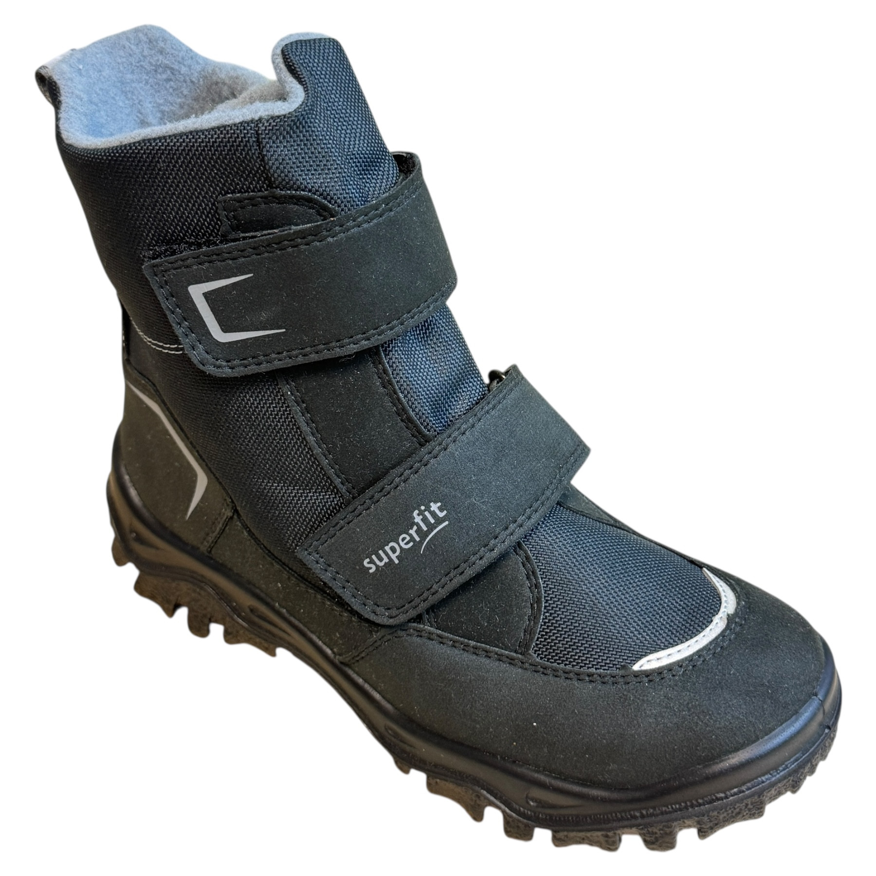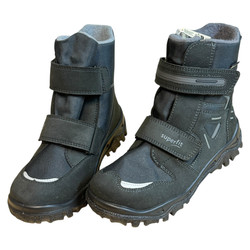 m. zewnętrzny: tworzywo sztuczne, wkładka: tkanina, podeszwa: m. syntetyczny, ocieplane