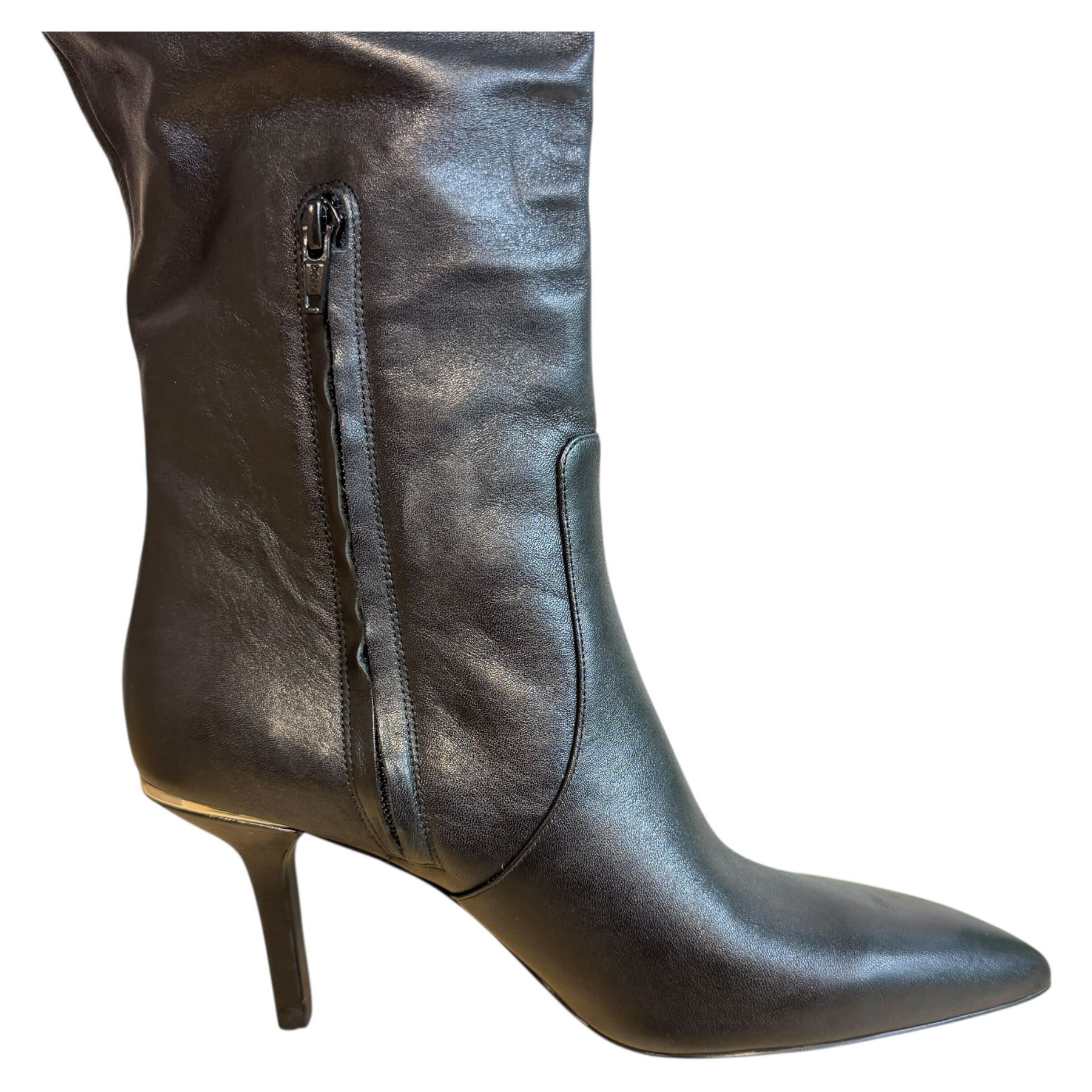 m. zewnętrzny: skóra, wkładka: skóra, podeszwa: m. syntetyczny, w. obcasa:9cm, w. cholewki: 43cm