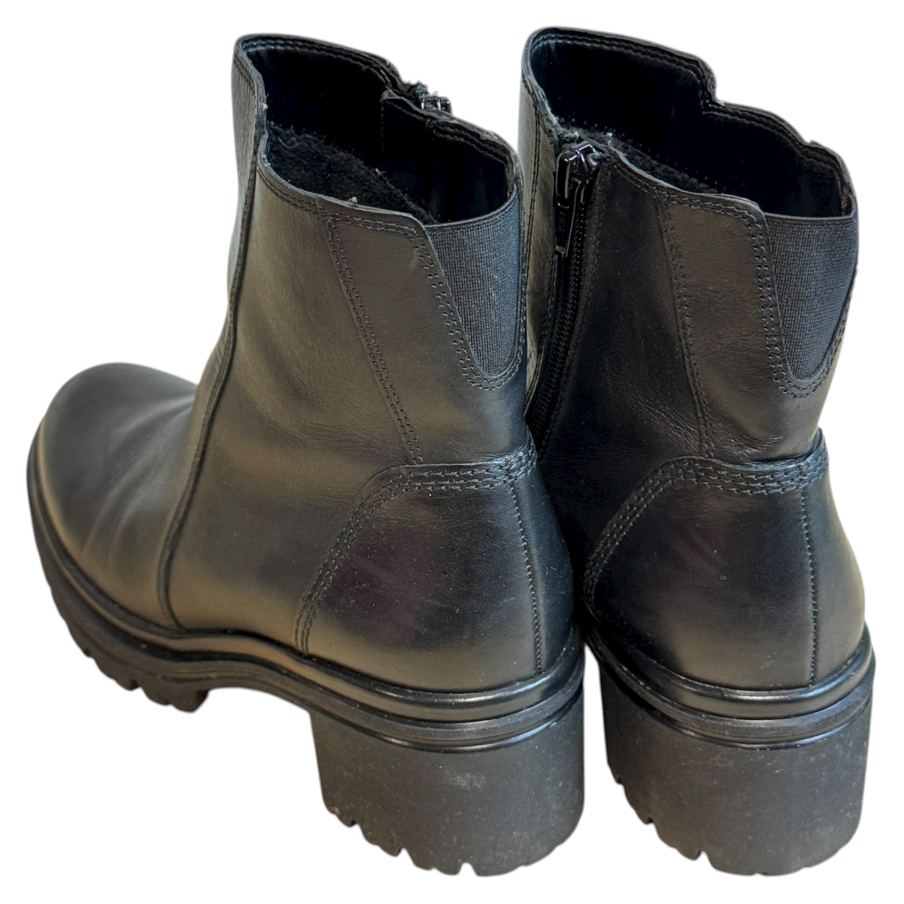 m. zewnętrzny: skóra, wkładka: tkanina, podeszwa: m. syntetyczny, w. obcasa:6cm, w. cholewki: 12cm
