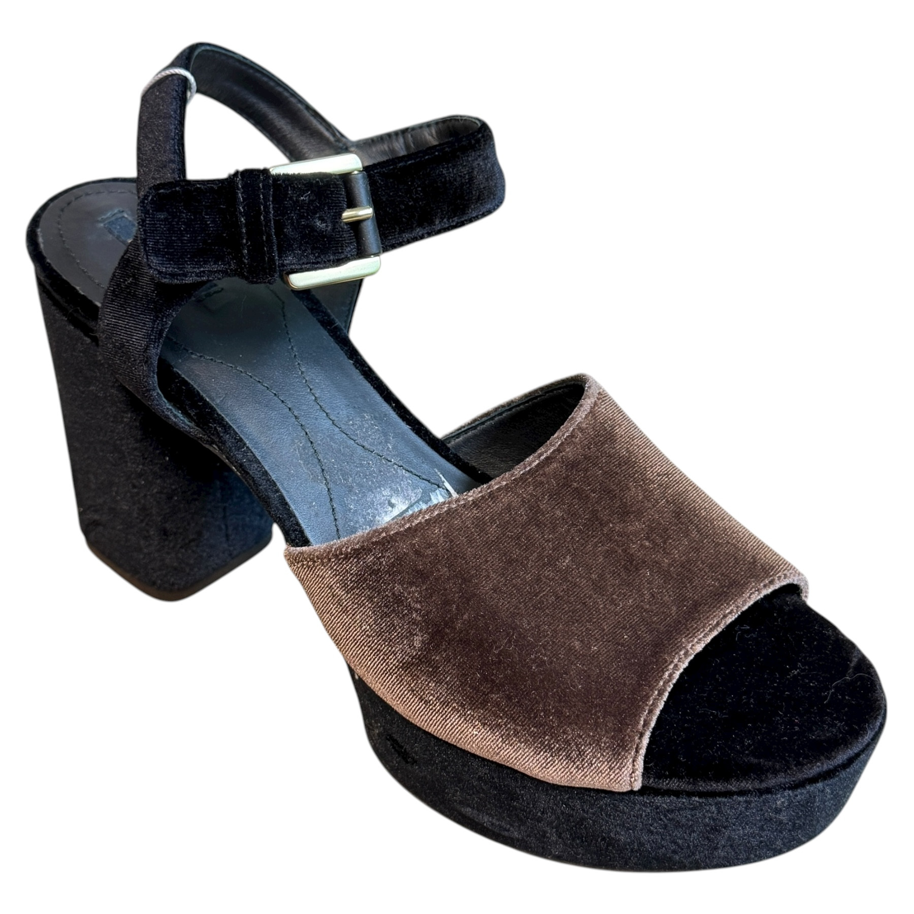 m. zewnętrzny: tkanina, wkładka: skóra, podeszwa: m. syntetyczny, w. obcasa:11cm