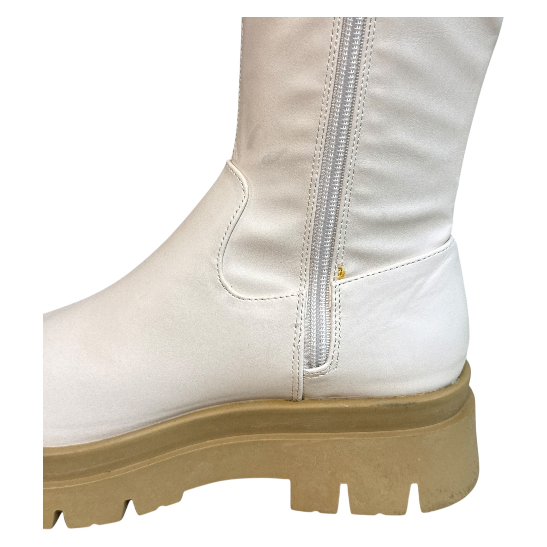 • Buty są nowe. W obu butach wady na cholewkach [na zdjęciu]. Zapakowane w nieoryginalnym kartonie.