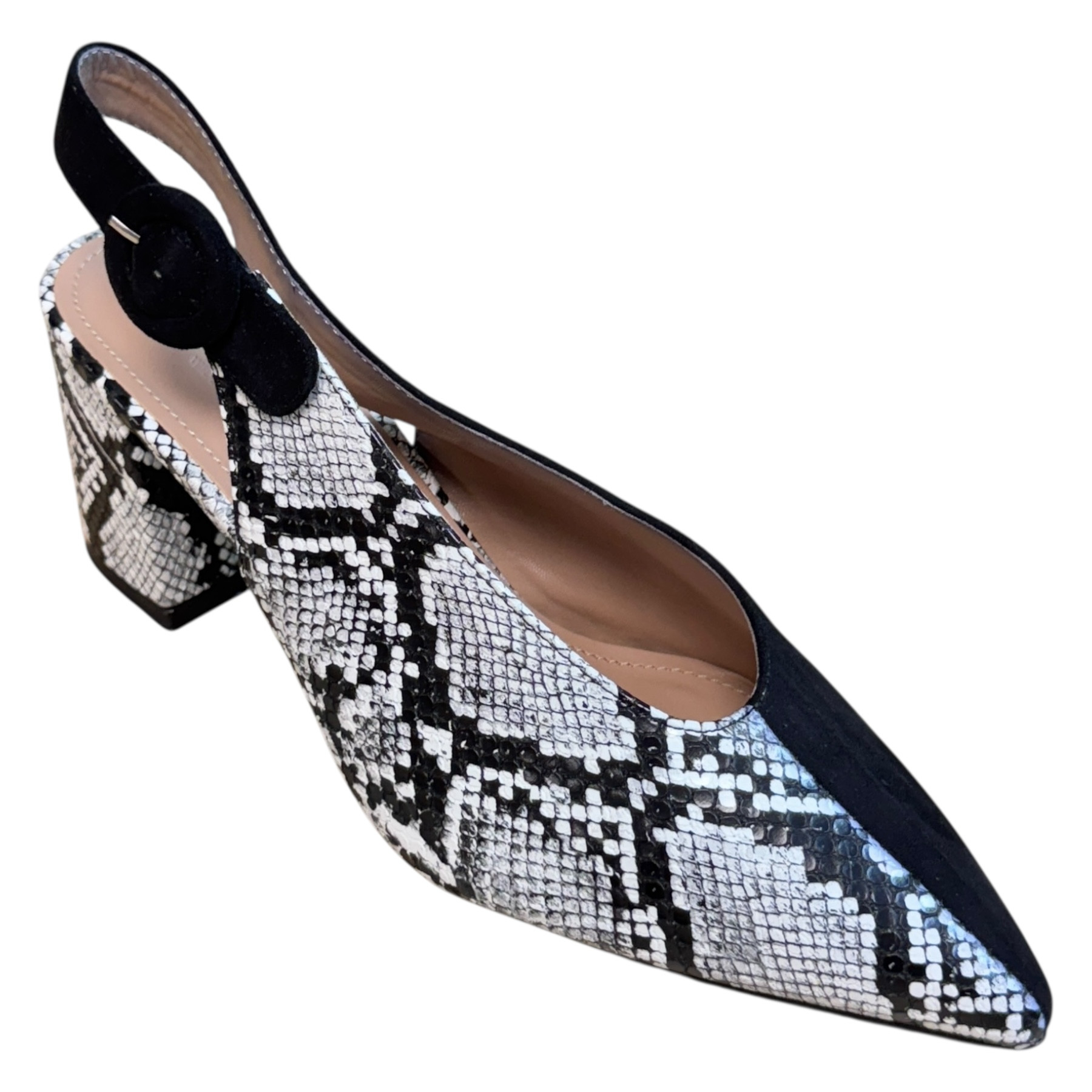 m. zewnętrzny: skóra ekologiczna, wkładka: skóra ekologiczna, podeszwa: m. syntetyczny, w. obcasa:7.5cm