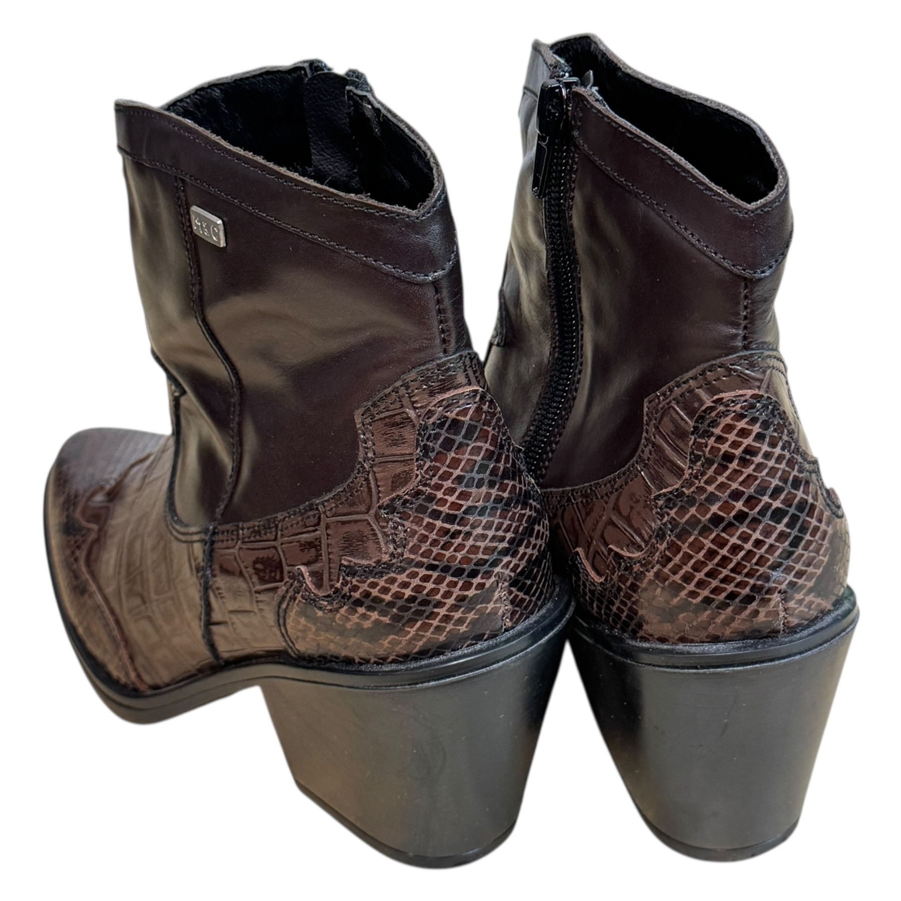 m. zewnętrzny: skóra, wkładka: tkanina, podeszwa: m. syntetyczny, w. obcasa:8cm, w. cholewki:14cm