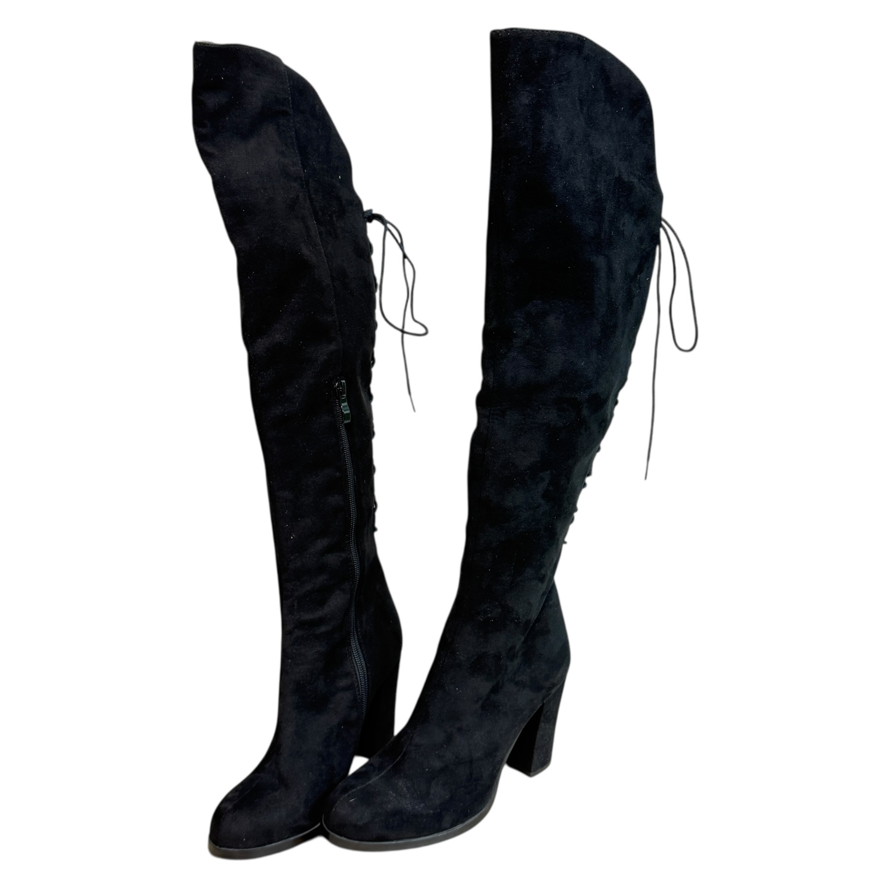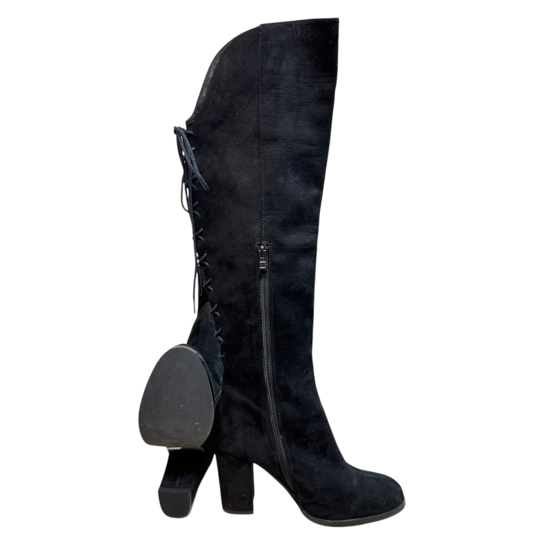 m. zewnętrzny: tkanina wkładka: tkanina, podeszwa: m. syntetyczny, w. obcasa:8.5cm, w. cholewki:53cm
