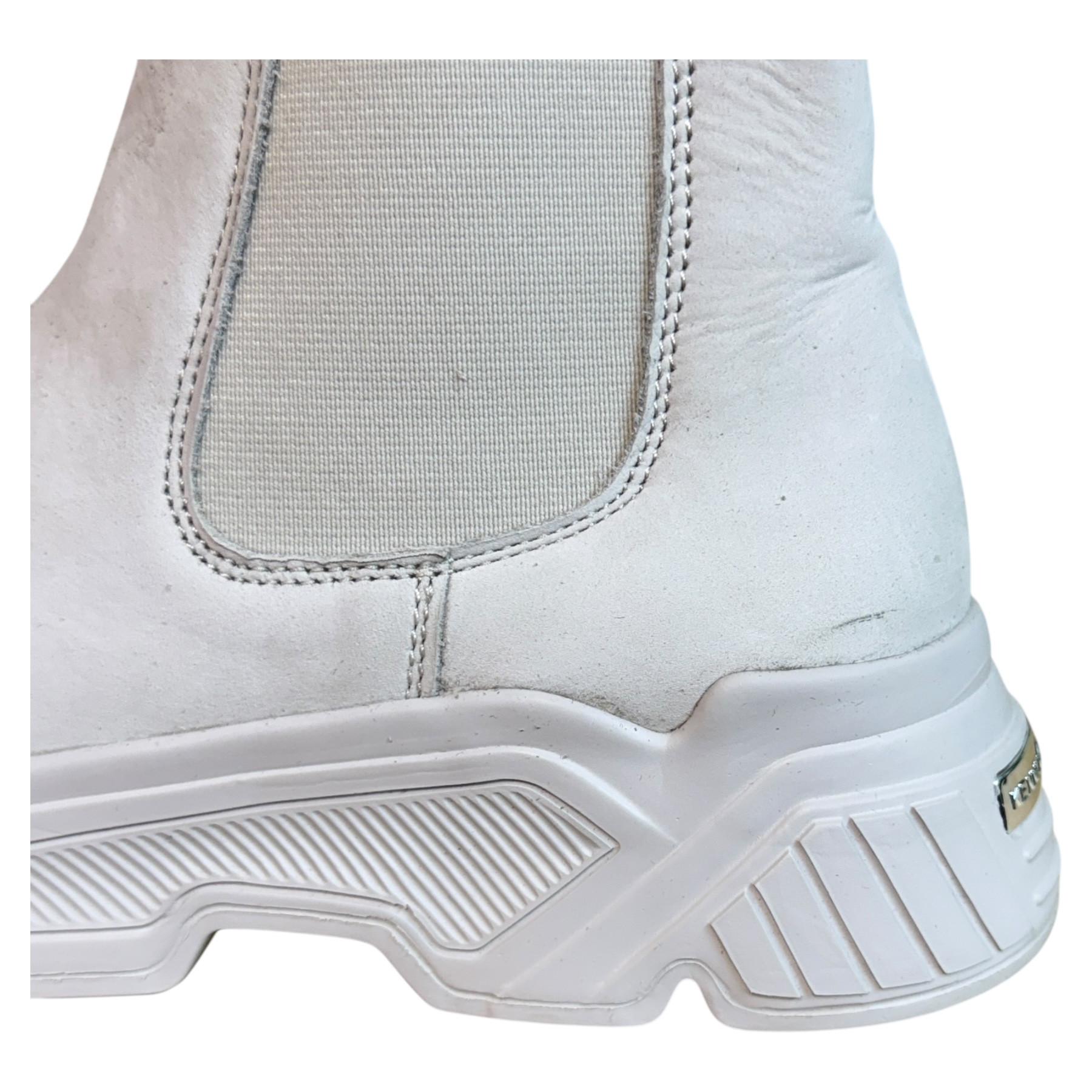 • Buty są w bardzo dobrym stanie. W obu butach drobne wady na cholewkach [na zdjęciu]. Zapakowane w nieoryginalnym kartonie.