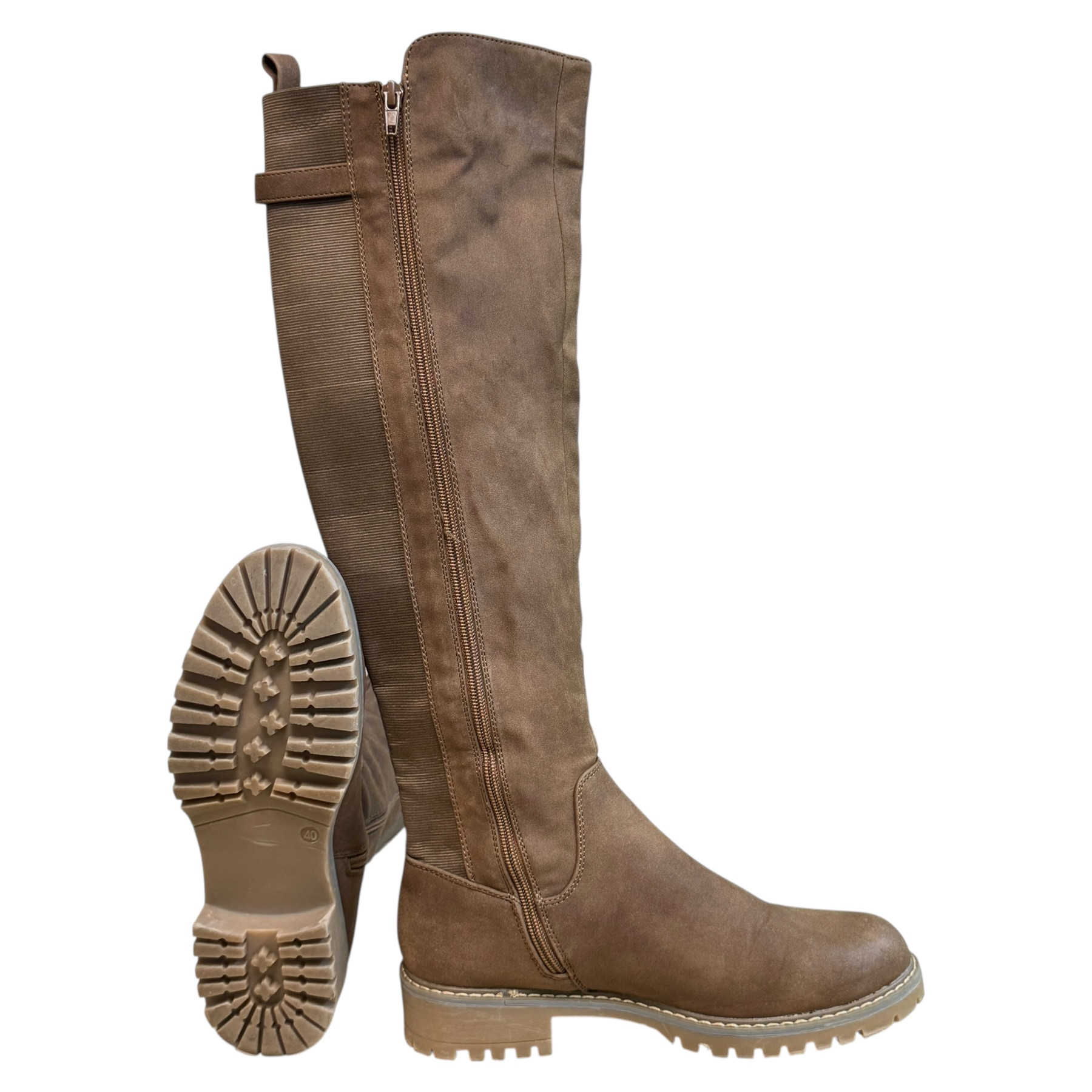 m. zewnętrzny: skóra ekologiczna, wkładka: skóra ekologiczna, podeszwa: m. syntetyczny, w. obcasa:3cm, w. cholewki:39cm